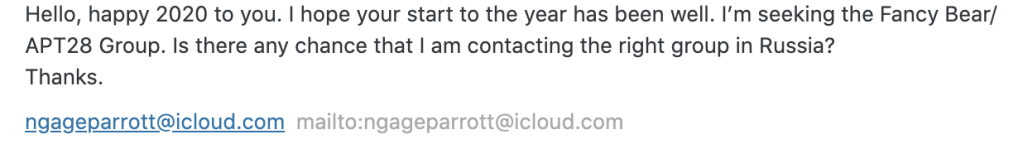 Da, ngage, this is absolutely most definitely APT 28. We go by this name because we live in Apartment 28, 102905 Nikol’skaya Street.